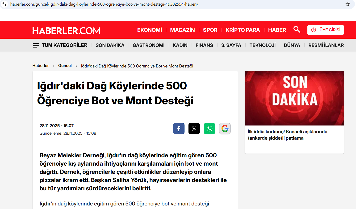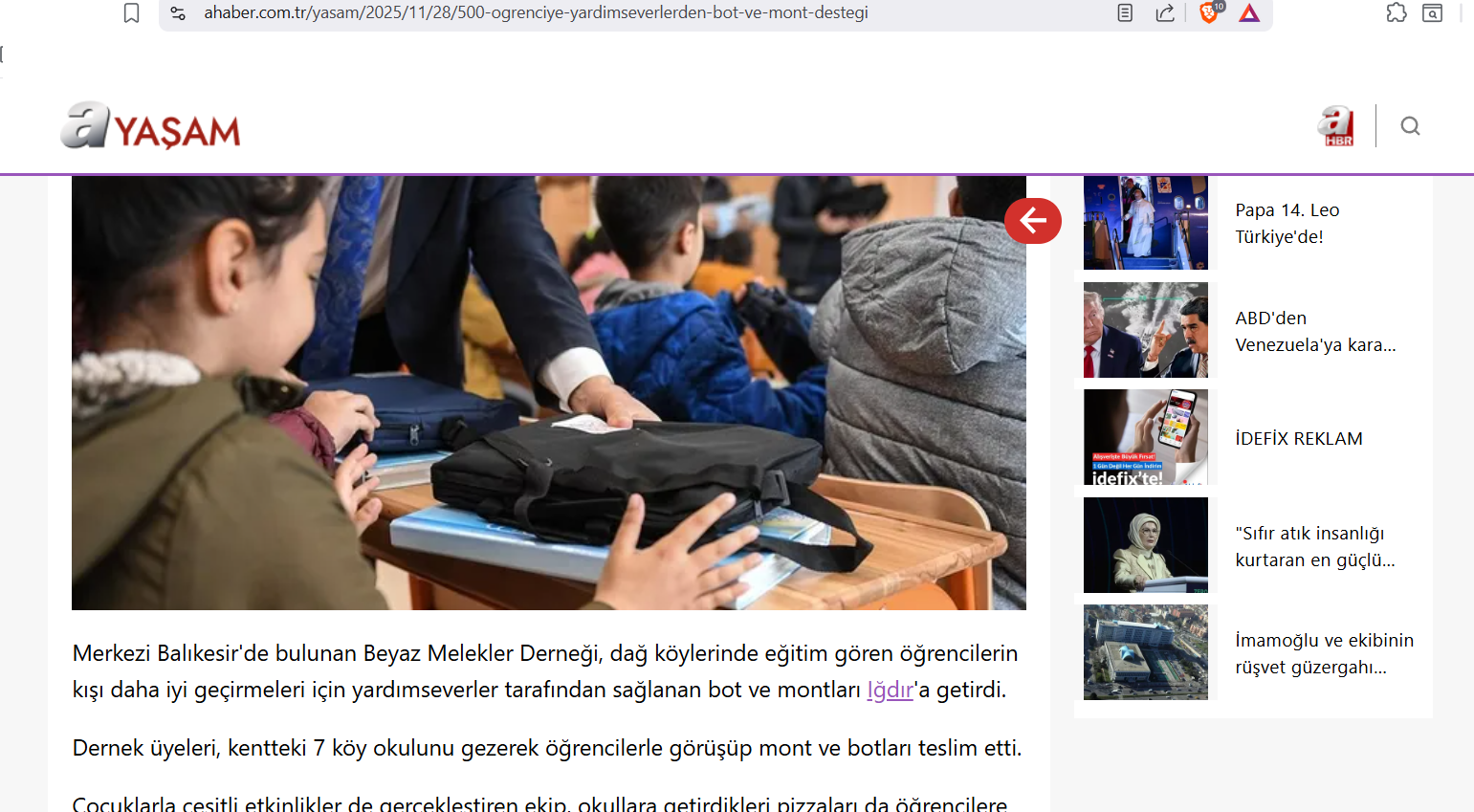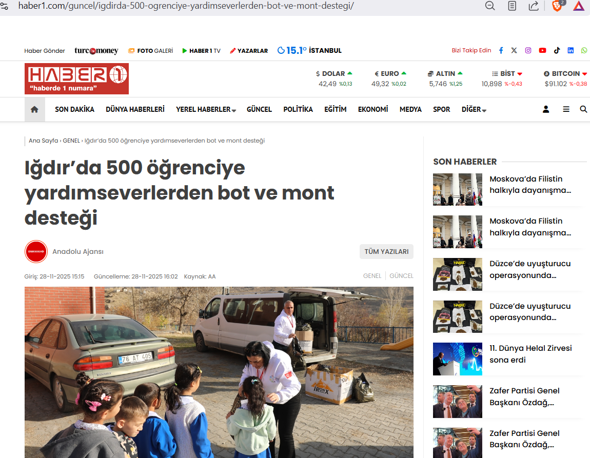 Beyaz Melekler Derneği olarak, Iğdır'ın köy okullarında öğrenim gören yüzlerce çocuğumuza kış aylarında sıcaklık ve destek sunmak amacıyla gerçekleştirdiğimiz Bot ve Mont Yardım Kampanyası, ulusal basında geniş yankı buldu!